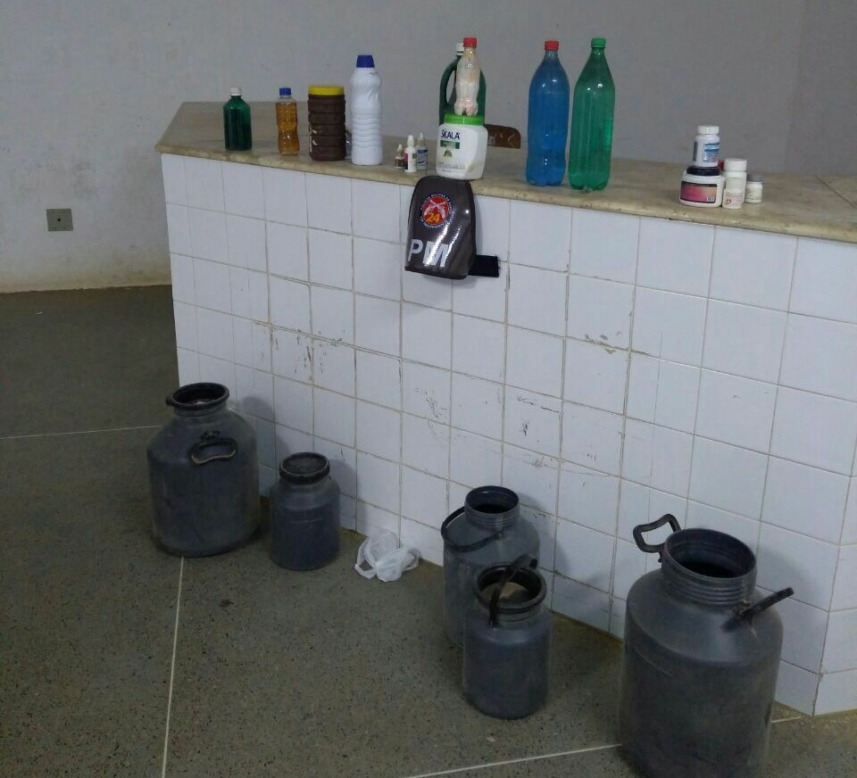 Diligências foram realizadas e foi alcançado pelos policiais militares outro indivíduo que, em sua posse, foram encontrados recipientes plásticos com vários produtos químicos (cafeína, xilocaína, éter, bicarbonato de sódio, óleo de amêndoa, clorídrico), supostamente destinados ao preparo de drogas ilícitas (craque e cocaína). Os envolvidos, juntamente com o material encontrado, foram apresentados na Delegacia de Polícia Civil, onde foi lavrado o flagrant pela Autoridade Policial.