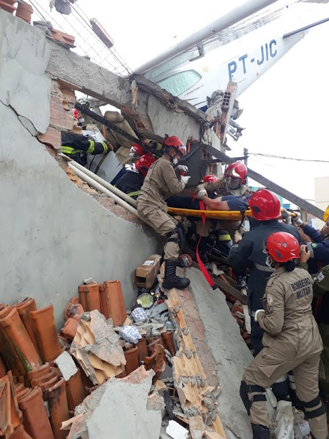 A vítima é o copiloto da aeronave. O piloto ficou preso nas ferragens e sofreu traumatismo craniano. A terceira vítima que era vigilante e estava na residência onde o avião caiu, ele sofreu escoriações.