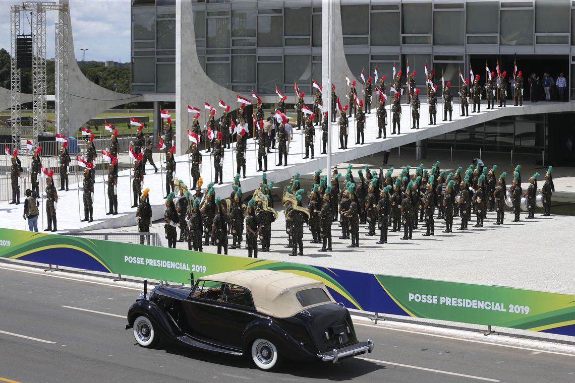 Visivelmente emocionado, o presidente chegou a tirar uma bandeira do Brasil do bolso e a agitou para uma plateia animada. “Deus preservou a minha vida e vocês acreditaram em mim”, disse o presidente empossado, “juntos, vamos fazer o Brasil ocupar um lugar de destaque que merece no mundo e trazer paz e prosperidade para o nosso povo”.