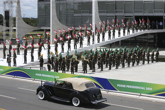 "É com humildade e honra que me dirijo a todos vocês como Presidente do Brasil. E me coloco diante de toda a nação, neste dia, como o dia em que o povo começou a se libertar do socialismo, da inversão de valores, do gigantismo estatal e do politicamente correto", continuou Bolsonaro.