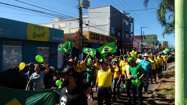 Moradores de Paraíso do Tocantins, na região central do estado, fizeram uma caminhada seguida de carreata, usando roupas com cores da bandeira do Brasil. A concentração do grupo começou às 9h na praça Cabo Luzimar, na avenida Bernardo Sayão.
