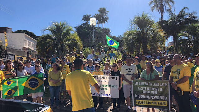 Cidades brasileiras tiveram neste domingo (30) protestos em apoio ao governo do presidente Jair Bolsonaro e à reforma da Previdência, à operação Lava Jato e ao pacote anticrime apresentado pelo ministro da Justiça e Segurança Pública, Sérgio Moro.