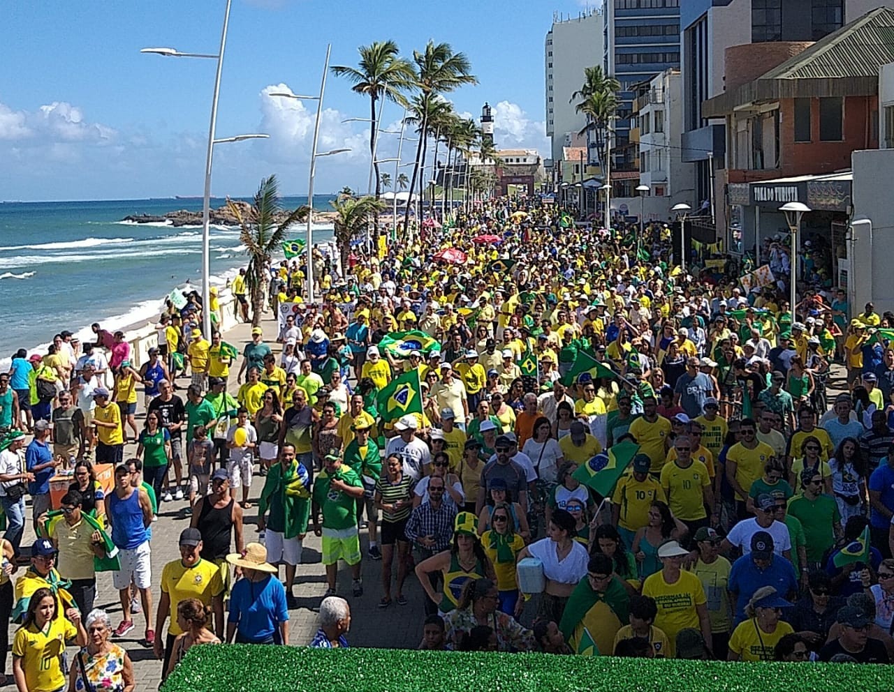 Em Salvador, os manifestantes se concentraram no Farol da Barra. Além de apoiar o governo de Jair Bolsonaro e os ministros Sérgio Moro e Paulo Guedes, o grupo protestava contra o presidente da Câmara, Rodrigo Maia (DEM-RJ), e os ministros do Supremo Tribunal Federal (STF).