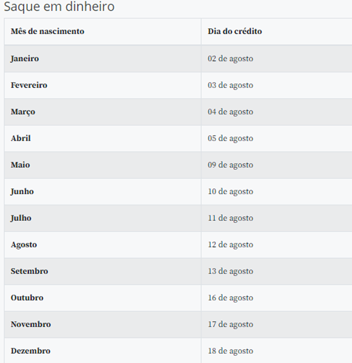 O pagamento também será feito a inscritos no Cadastro Único de Programas Sociais do Governo Federal (CadÚnico) nascidos no mesmo mês. O dinheiro será depositado nas contas poupança digitais e poderá ser movimentado pelo aplicativo Caixa Tem. Somente de duas a três semanas após o depósito, o dinheiro poderá ser sacado em espécie ou transferido para uma conta-corrente.