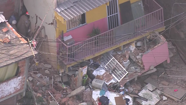 Em um dos pavimentos, os bombeiros tentam cavar os escombros. De acordo com as primeiras informações, duas pessoas estão desaparecidas. Segundo a Defesa Civil, uma das pessoas desaparecidas é uma criança.