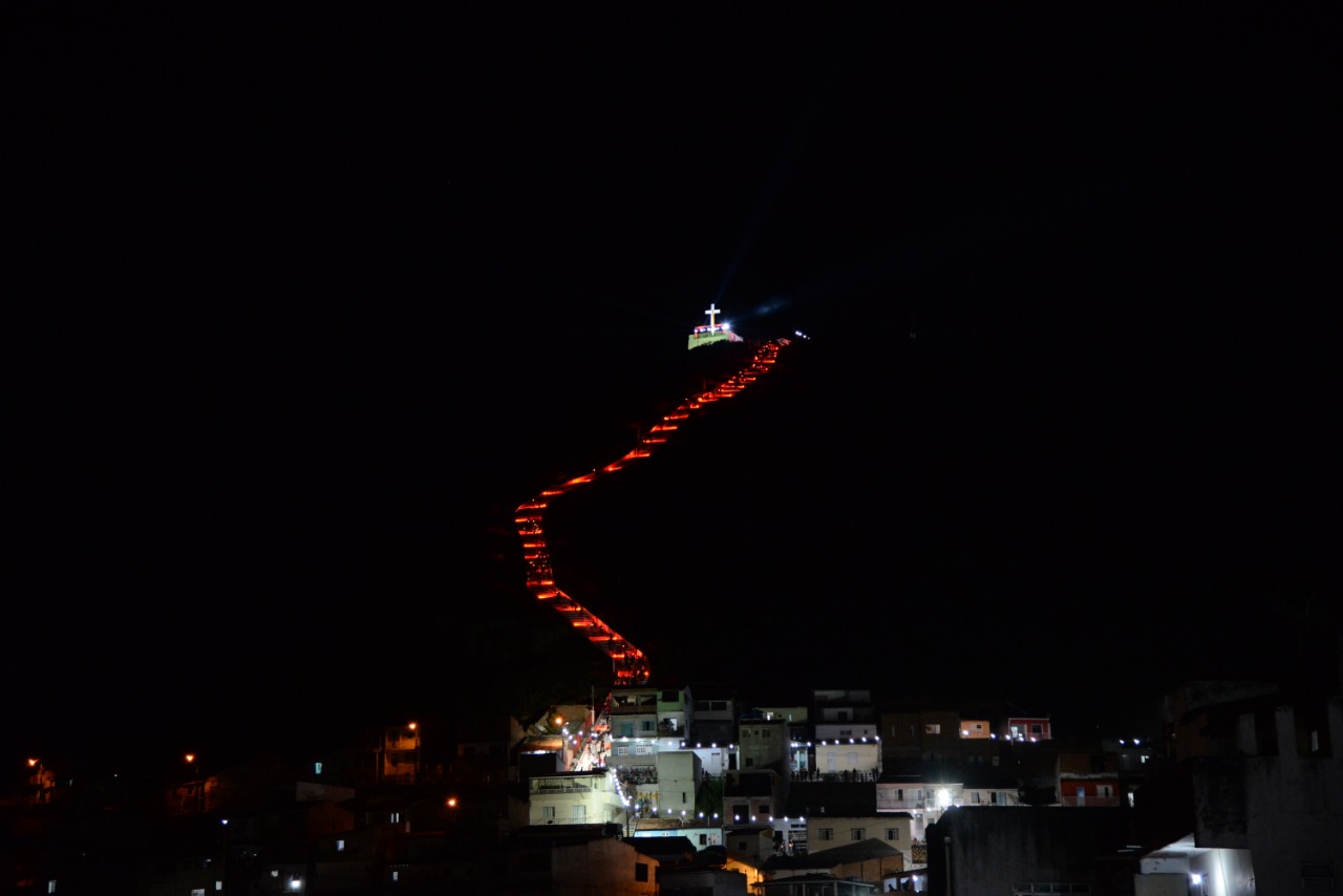 Outra novidade da XVI Caminhada da Luz foi a utilização de duas concentrações, uma na Praça Castro Alves, a popular Praça da Matriz, em frente à Igreja da Matriz de Santo Antônio, e outra na Praça do Divino Espírito Santo, em frente à Igreja São José Operário. Os cortejos seguiram separados até o encontro que aconteceu em frente ao Posto Turístico, no bairro da Serrinha. Ali os católicos tomaram fôlego para subir os 365 degraus que levam ao Alto do Cruzeiro.