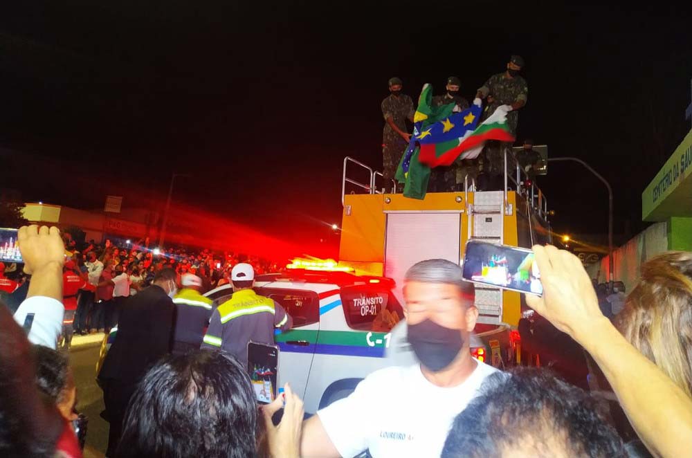 O corpo do prefeito de Vitória da Conquista, Herzem Gusmão (MDB), de 72 anos, que morreu na quinta-feira (18), devido a complicações da Covid-19, foi enterrado na noite deste sábado (20). Populares se aglomeraram na frente do Cemitério Jardim da Saudade.