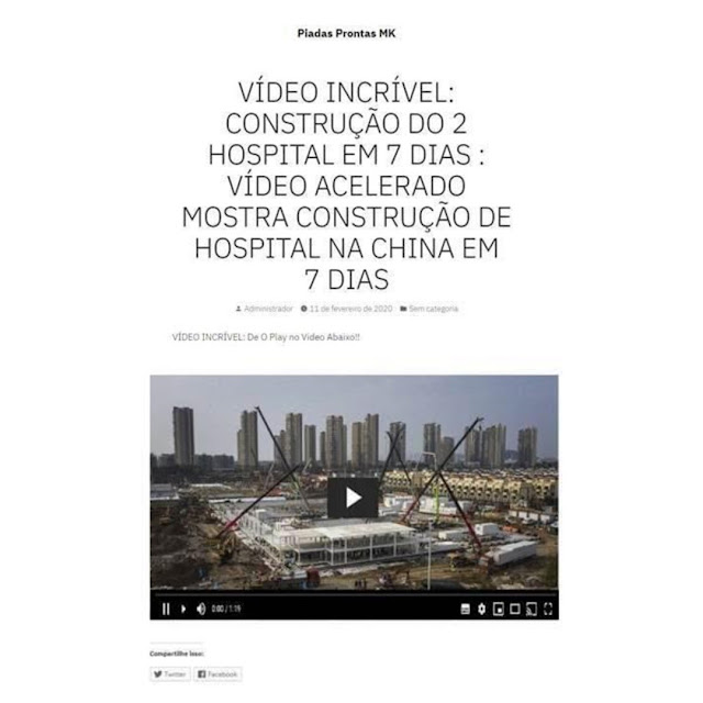 É um trojan bancário, que visa roubar dados de acesso de Internet Banking. Ele está sendo escondido em um falso vídeo que tenta atrair as vítimas oferecendo a gravação (acelerada) da construção do hospital chinês, que durou sete dias. Veja o print: