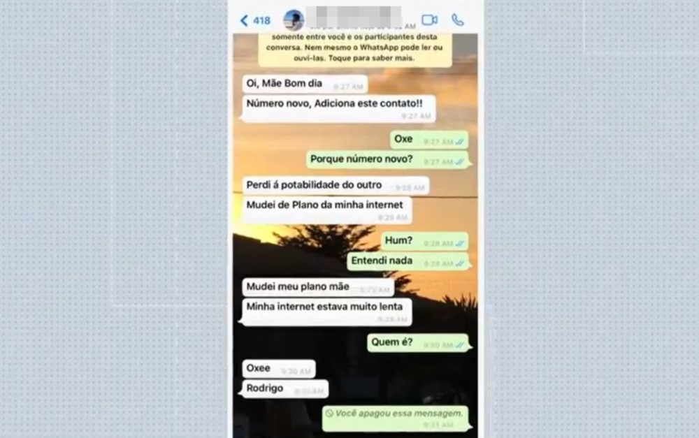 Um criminoso tentou aplicar um golpe por um aplicativo de mensagens, para desembolsar mais de R$ 2 mil de uma mulher, enquanto se passava pelo filho dela.
