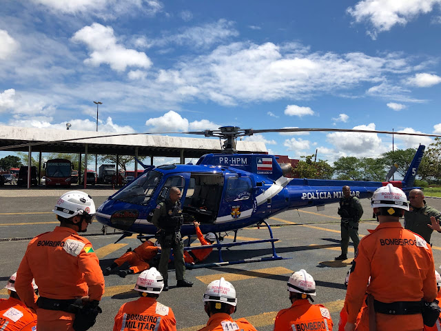 O IV Curso de Prevenção e Combate a Incêndios Florestais 2019.1 promovido pelo 11º Grupamento de Bombeiros Militar (GBM/Itaberaba) recebeu instrução do Grupamento Aéreo (Graer) da Polícia Militar sobre 'Operações Aéreas nos Incêndios Florestais', na manhã de quinta-feira (15), em Simões Filho (BA), no Complexo de Ensino e Instrução do Corpo de Bombeiros Militar. Profissionais da Bahia, Paraíba e Acre participam deste aperfeiçoamento desde 3 de agosto, com encerramento previsto para 1º de setembro.