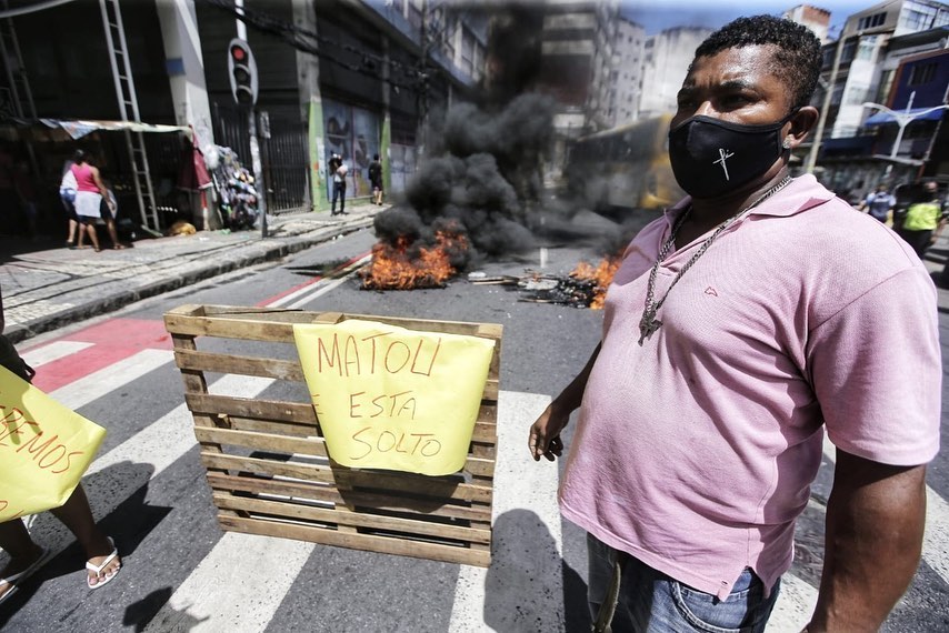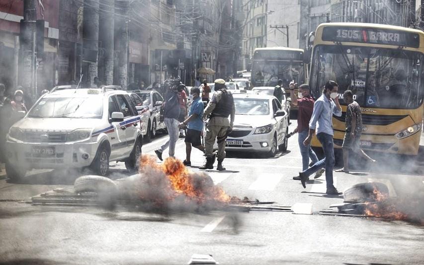 O grupo saiu da casa da vítima caminhando e fechou a via usando materiais como madeiras, pneus, garrafões e objetos de plástico, ateando fogo no local, Uma viatura da Transalvador foi para o local, assim como uma equipe da Polícia Militar. Tudo ficou parado - somente motos conseguiam passar no local inicialmente.