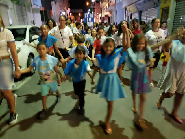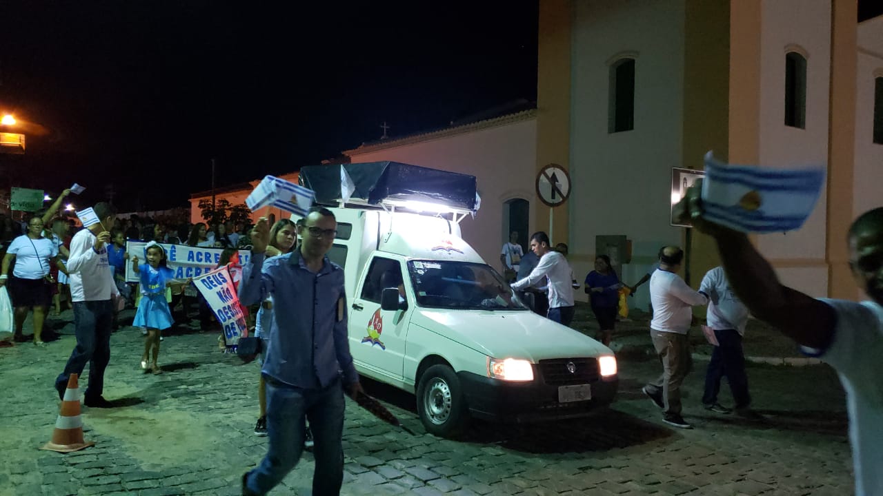 Com objetivos de disseminar a palavra de Deus e ajudar pessoas espiritualmente necessitadas, a igreja Assembleia de Deus promoveu uma Caminhada Evangelística na noite desta sexta-feira (5) em Jacobina. Os membros das congregações assembleianas ganharam as ruas da cidade, com pessoas de todas as idades, de crianças a idosos, famílias inteiras participaram do projeto.