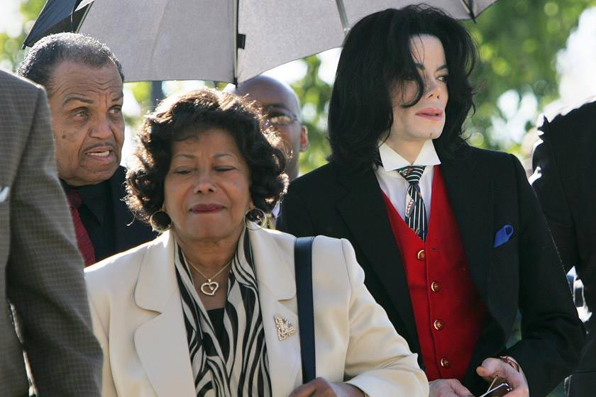 | Joe, Katherine e Michael no dia em que o Rei do Pop foi acusado de molestar um garoto (Foto: JUSTIN SULLIVAN) |