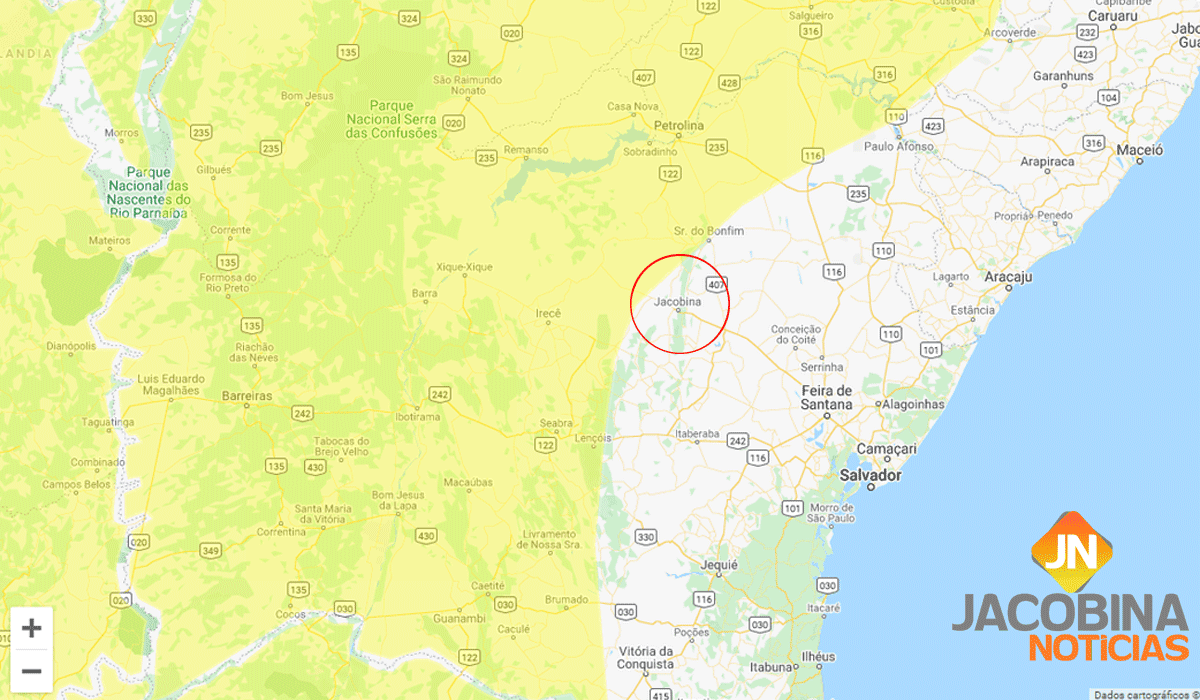 Um alerta amarelo foi emitido pelo Inmet (Instituto Nacional de Meteorologia) nesta quarta, para uma grande área do nordeste, onde podem ocorrer chuvas moderadas. Parte do estado da Bahia, incluindo a região de Jacobina, Senhor do Bonfim, Juazeiro, Irecê, Xique-Xique, Barra, Lençóis, entre outras localidades, podem ter chuvas entre 20 e 30 mm/h ou até 50 mm/dia, com ventos de 40 a 60 km/h.