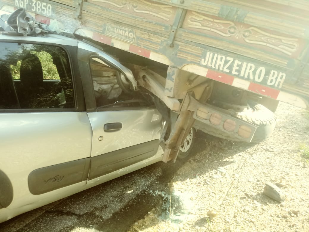 Um homem identificado como Joabe Alves, natural de Jacobina, ficou ferido na manhã desta segunda-feira (01/07) após colidir o veículo Uno que conduzia na traseira de um caminhão na BA-131, trecho que liga os municípios de Jacobina e Caém, no Centro-Norte da Bahia. O caminhão é licenciado em Juazeiro.