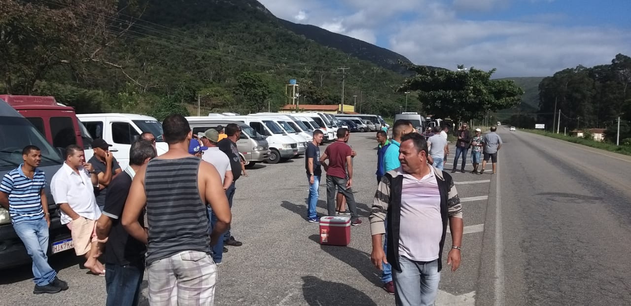 Na manhã desta quarta-feira, 21, motoristas de veículos de lotação fazem um protesto no antigo Posto Fiscal na BR 324 em Jacobina, contra a lei intitulada do Transporte Pirata, aprovada pelo presidente Bolsonaro.