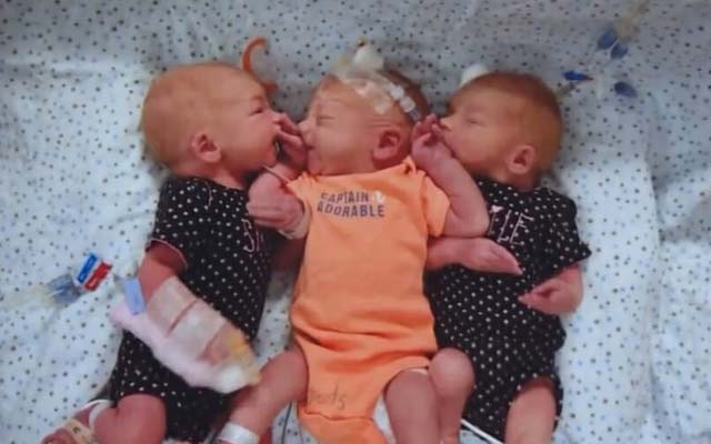 Num primeiro momento os médicos acharam que ela esperava gêmeos. Não bastasse uma notícia dessa dimensão, ela foi surpreendida novamente ao se submeter ao ultrassom: eram trigêmeos!