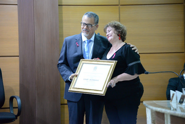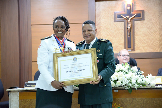 Na noite dessa quinta-feira, 31, a Câmara de Vereadores de Jacobina foi palco de grandes homenagens a personalidades que contribuem consideravelmente com as ações desenvolvidas pela Prefeitura de Jacobina. Com a presença do prefeito Luciano Pinheiro, títulos de Cidadãs Jacobinenses foram conferidos à Major PM Denice Santiago e à Secretária Estadual de Políticas para as Mulheres Julieta Palmeira.