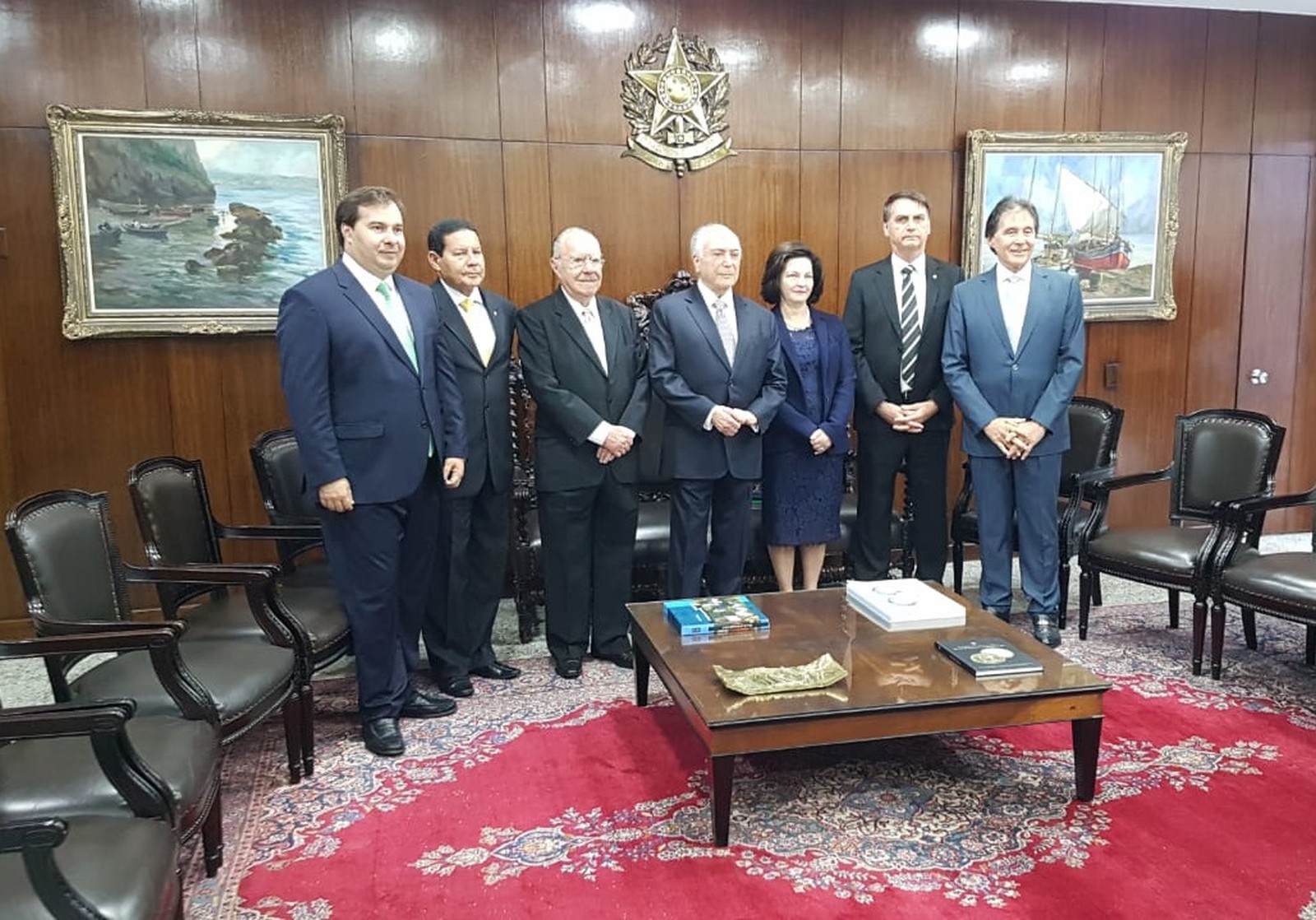 Eunício saudou as presenças de Sarney, Temer e Bolsonaro e afirmou que o encontro dá início ao processo de transição para o próximo governo.