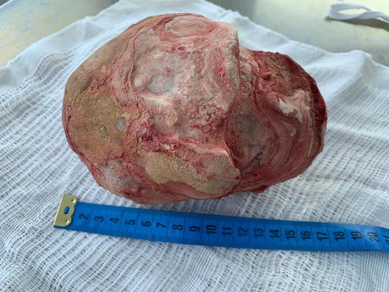 O senhor Manoel Ferreira da Silva, 51 anos, morador da cidade de Miguel Calmon, no Centro Norte da Bahia, foi operado nesta segunda-feira (20) no Hospital Municipal Antônio Teixeira Sobrinho (HMATS), em Jacobina, na Chapada Diamantina, com problemas na bexiga. Para surpresa da equipe médica liderada pelo urologista João Cléber, uma pedra de 1,3 Kg, medindo 18 centímetros, foi retirada da bexiga do paciente. O cirurgião disse que essa é uma das maiores pedras em bexiga já registradas no mundo.