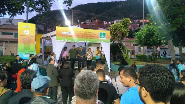 A prefeitura de Jacobina lançou, nesta terça-feira (30), o projeto Banho de Luz, que irá renovar a iluminação pública em varias ruas e avenidas da cidade. A solenidade, que acontece na Praça Miguel Calmon, conta com a presença do prefeito do município, Luciano Pinheiro, da primeira-dama de Jacobina, Aline Pinheiro, secretários e moradores do bairro.
