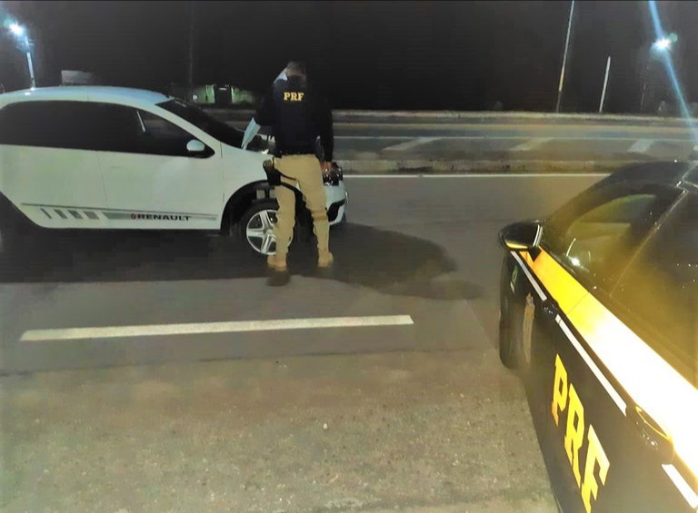 A Polícia Rodoviária Federal (PRF) recuperou, na noite desta quarta-feira (14), um carro de locadora, em uma abordagem no Km 356 da BR 324, trecho do município de Capim Grosso (BA). Um homem foi detido.