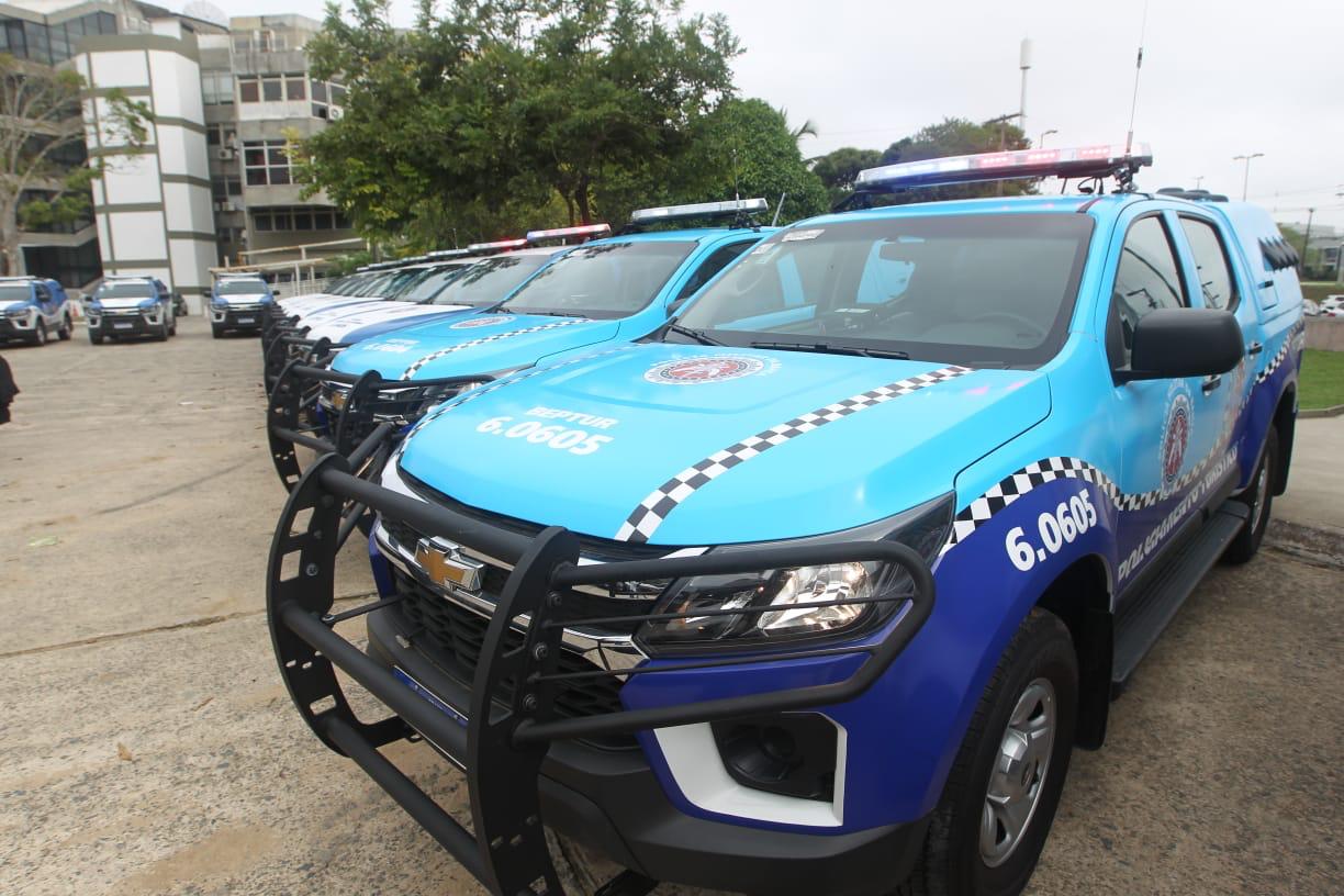 O governador Rui Costa realizou a entrega de 50 novas viaturas, modelo S10, à Polícia Militar da Bahia (PMBA). O ato ocorreu na manhã desta quinta-feira (22), no pátio da Secretaria da Segurança Pública (SSP), no Centro Administrativo. A ação representa um investimento de R$ 5,7 milhões na área de segurança do estado.