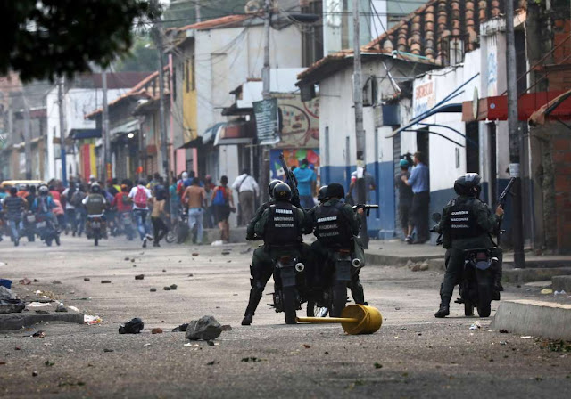 Os distúrbios na fronteira, em Pacaraima (RR), acentuaram-se ao anoitecer, quando um grupo de 50 jovens venezuelanos jogaram coquetéis molotov e pedras contra militares do lado venezuelano. No local estavam outras 500 pessoas, que se dispersaram quando as tropas atiraram com armas de fogo lançaram bombas de gás lacrimogêneo. Os manifestantes atearam fogo ao matagal em volta do posto do Exército venezuelano, onde havia dois veículos estacionados, que foram impactados pelos artefatos caseiros e também acabaram incendiados.