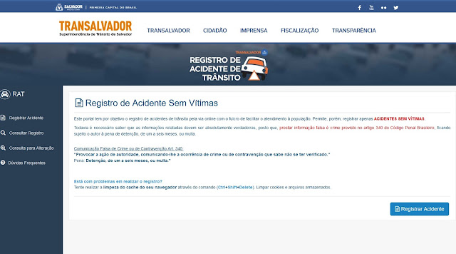 A Transalvador anunciou nesta quinta-feira (25) que irá suspender o registro presencial de acidentes de trânsito sem vítimas a partir da próxima terça-feira (30). Com isso, os condutores envolvidos em ocorrências que não resultaram em vítimas feridas ou fatais deverão registrar os casos exclusivamente no site da Transalvador.